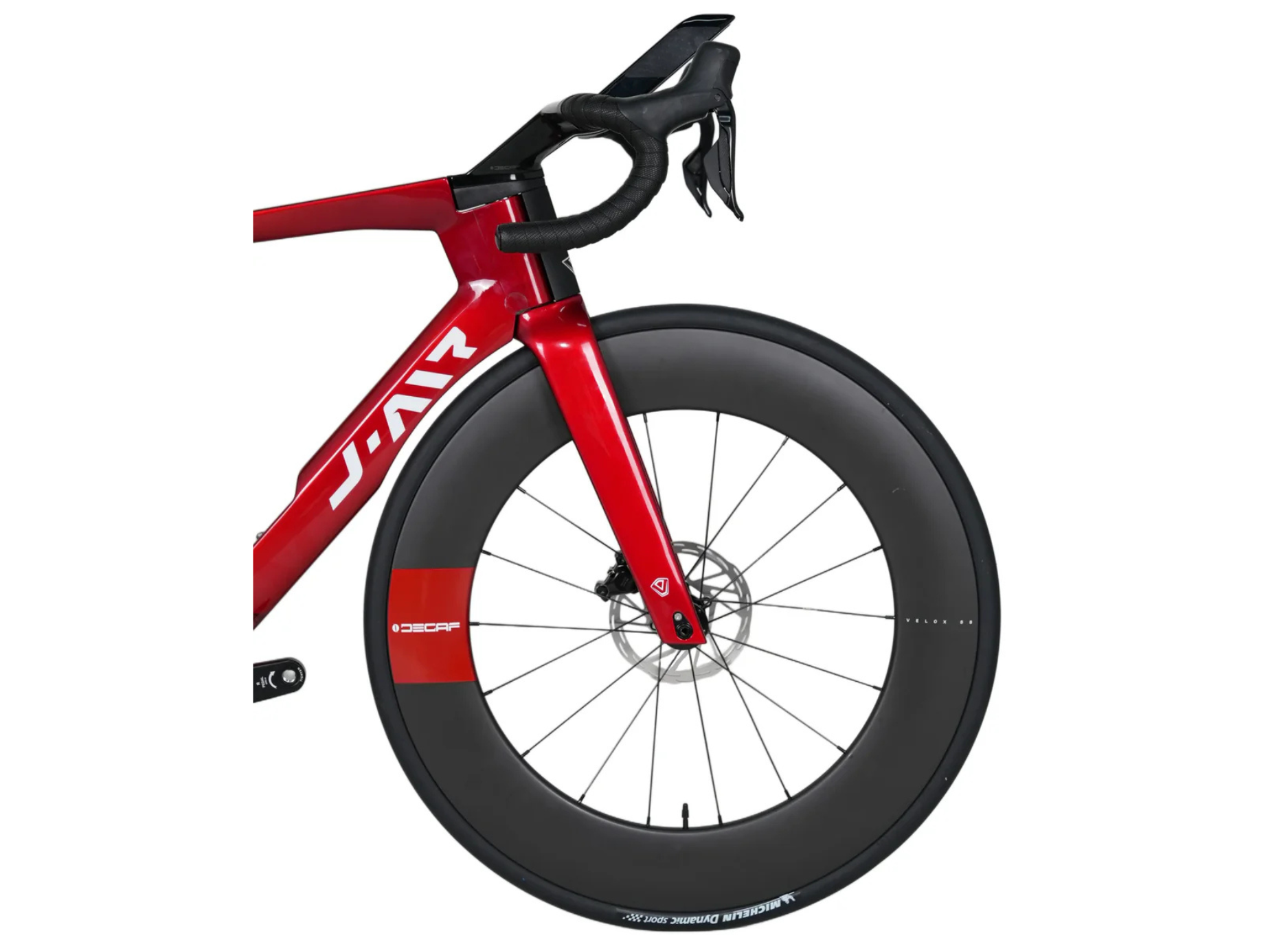 The Java Vittoria AIR R7170 is built for aerodynamic efficiency, speed, and precision. Designed with a full carbon frame and fork, this aero machine cuts through the wind while maintaining incredible stiffness and control. Every component is selected for top-tier performance, making it ideal for competitive triathletes, time trialists, and serious road racers.